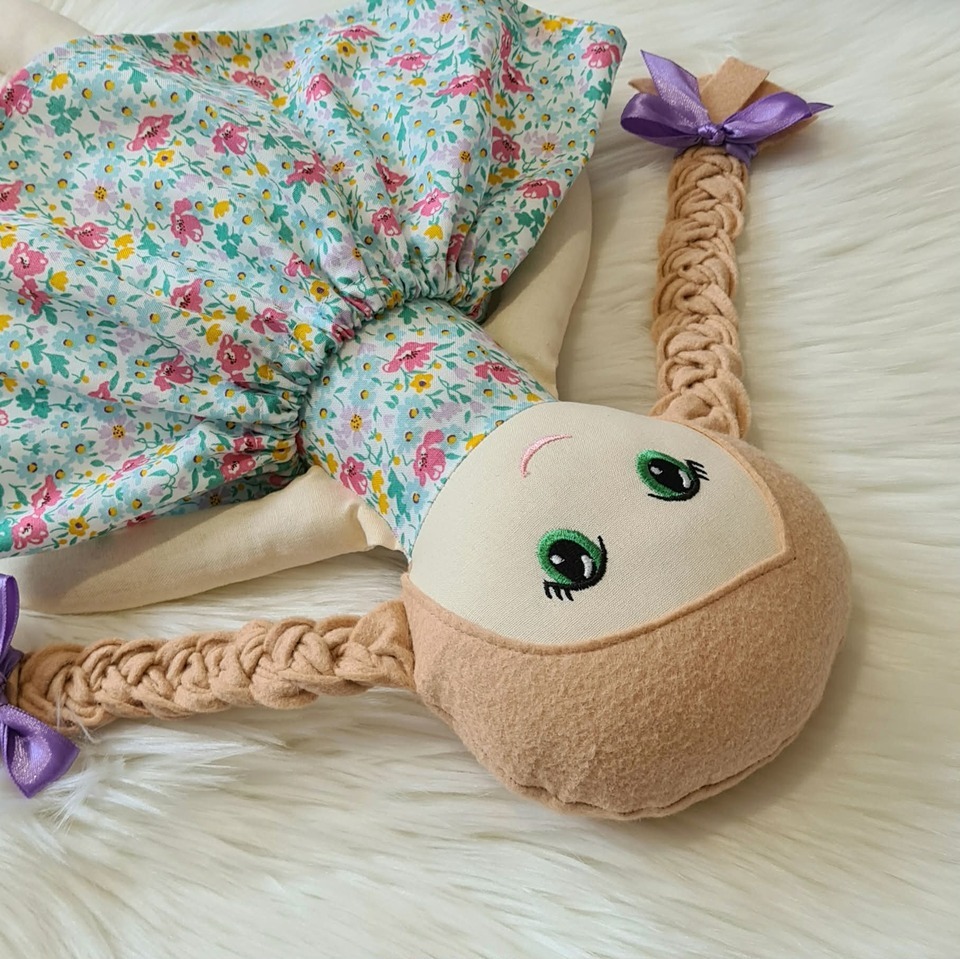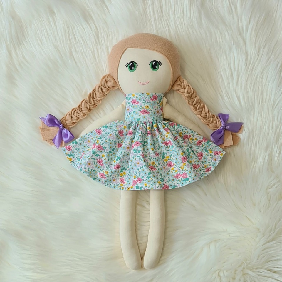Hope is wearing a removable floral skirt. She has been lovingly handmade and stands at approx 50cms, made from quality new fabrics. She has a light skin tone and her hair is the most gorgeous shade of sandy brown wool blended felt. Her face has been machine embroidered with a sweet smile and she has been triple stitched in all the right places to enjoy many cuddles and is firmly stuffed with polyester fiberfill.