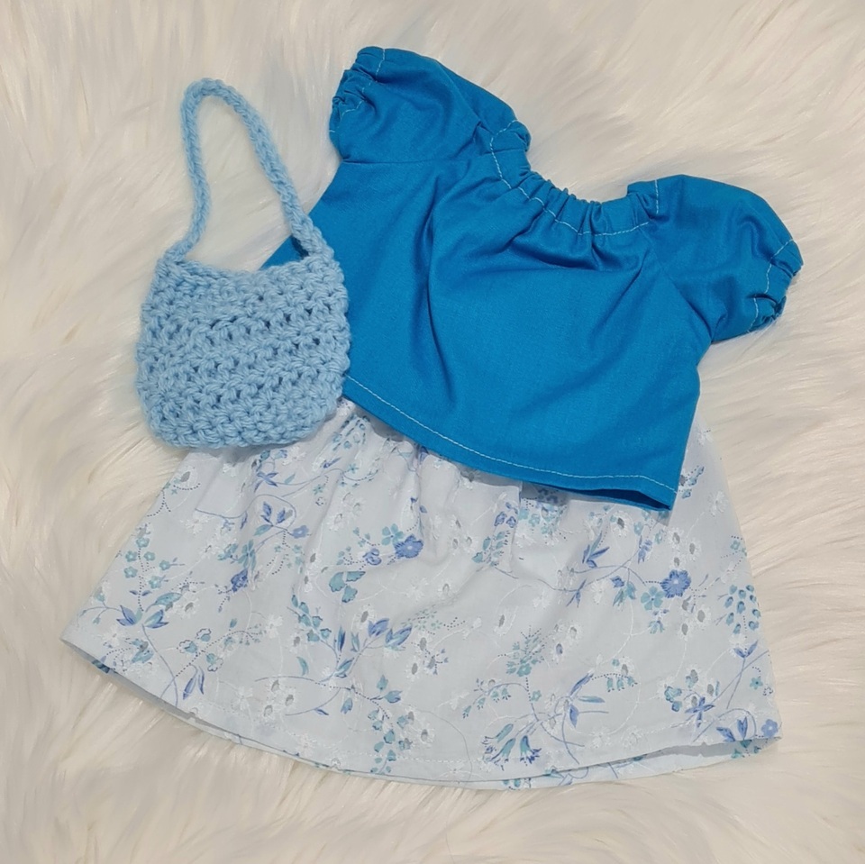 ***Annie comes with a FREE extra outfit for lots more dress up fun! A cute floral skirt, blue peasant dress and a crocheted blue bag***
