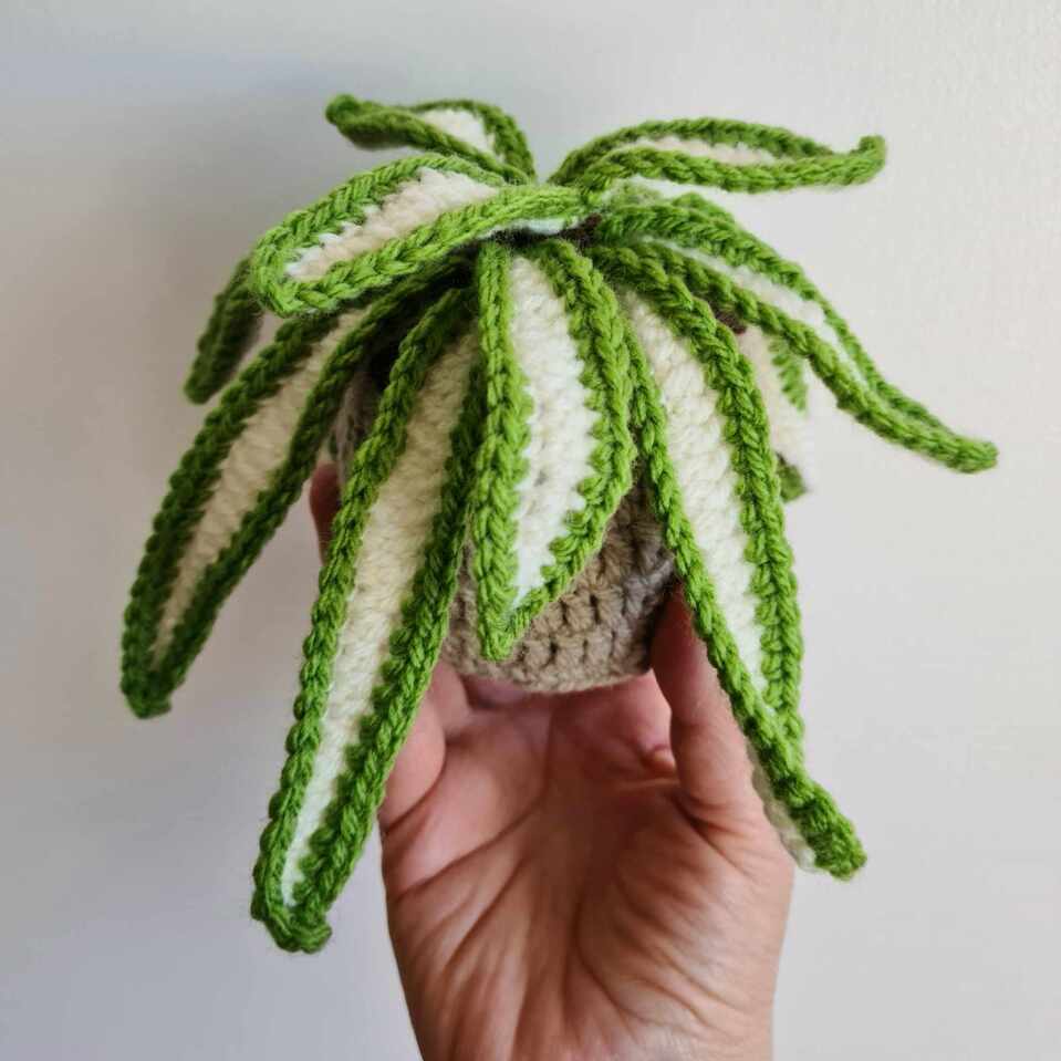 Crocheted Spider Plant with Taupe Pot