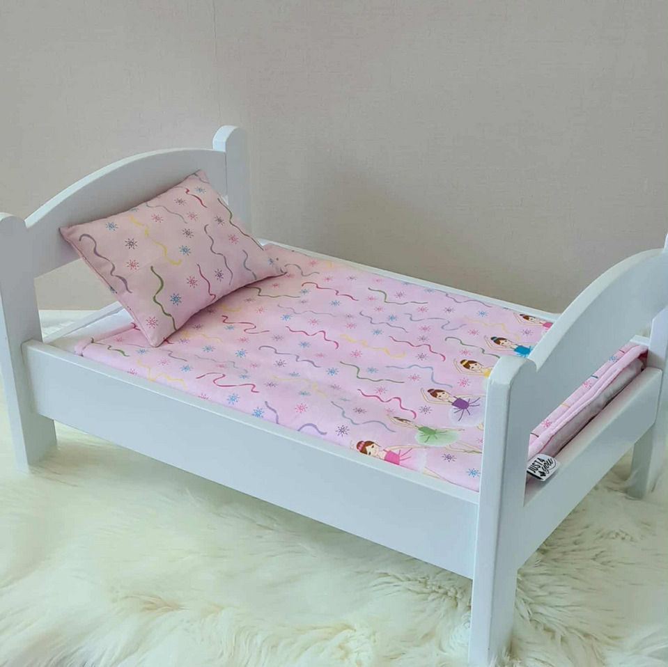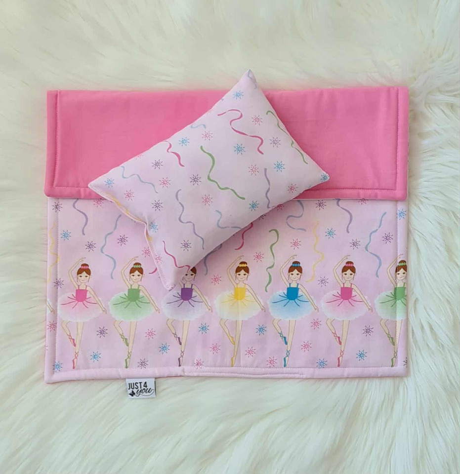 Dolls Bed, Cot or Pram Bedding Set - 2 Piece Pink Ballerina : consisting of blanket and 1 pillows. The blanket is slightly smaller than my 3 Piece Doll Bedding Sets.